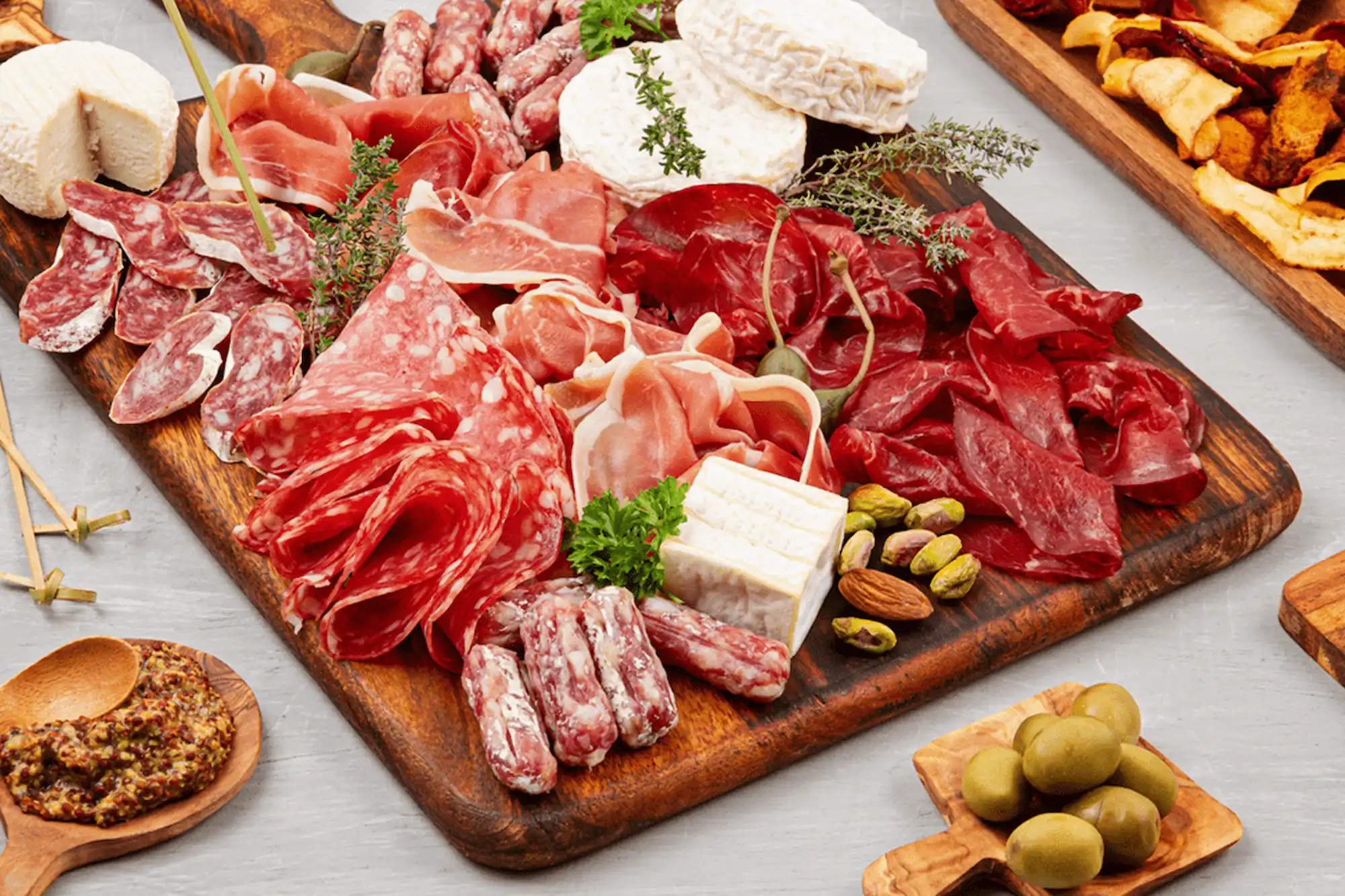 Genoa salami, prosciutto, pepperoni, Soppresatta, bocconcini, provolone, olive tapenade, balsamic grilled vegetables, sun dried tomatoes, marinated artichoke hearts, roasted red peppers and Sicilian black and green olives served with grissini, garlic toasts, Italian peasant bread